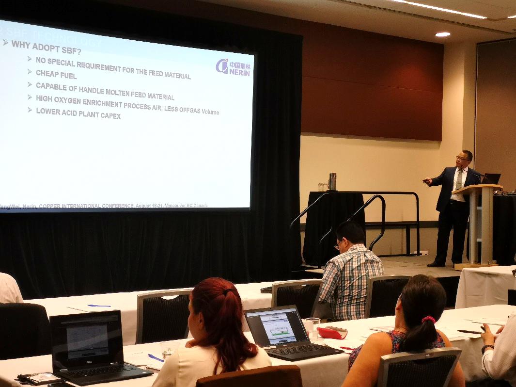 2019年8月18-21日,第十届世界铜业大会在加拿大温哥华举行,中国瑞林公司资深技术总监姚素平、冶金事业部经理王玮、副经理何峰等参会,与来自世界各地的参会代表交流研讨铜冶炼先进技术。冶金事业部经理王玮应邀进行专题讲课,介绍侧吹炉炼铜等先进技术在中国的创新与应用。
